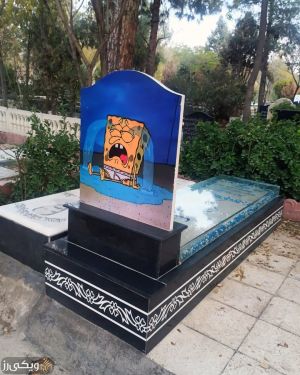تصویر سنگ قبر کودک ایرانی با طرح «باب اسفنجی» - ترویج خشونت؛ در این انیمیشن صحنههای بسیاری از نمایش خشونت به تصویر کشیده شده است. تنفر داشتن، نفرین کردن برای مرگ، لگدمال کردن دیگران، حمله کردن و عصبانی شدن از جمله مصادیق خشونت در این انیمیشن هستند.[۲۹] با توجه به اینکه کودکان مدام در حال یادگیری هستند، اگر آموزش خشونت توسط یک قهرمان جذاب اجرا شود، این پیام را برای آنها تقویت میکند که خشونت راهحل قابل قبولی برای حل تعارض و اختلاف است. قرار گرفتن مکرر کودک در این خطر موجب ایجاد این حس میشود که در برابر مسائل پیرامون خود واکنش خود را بهصورت خشونت نشان دهد.[۳۰]
