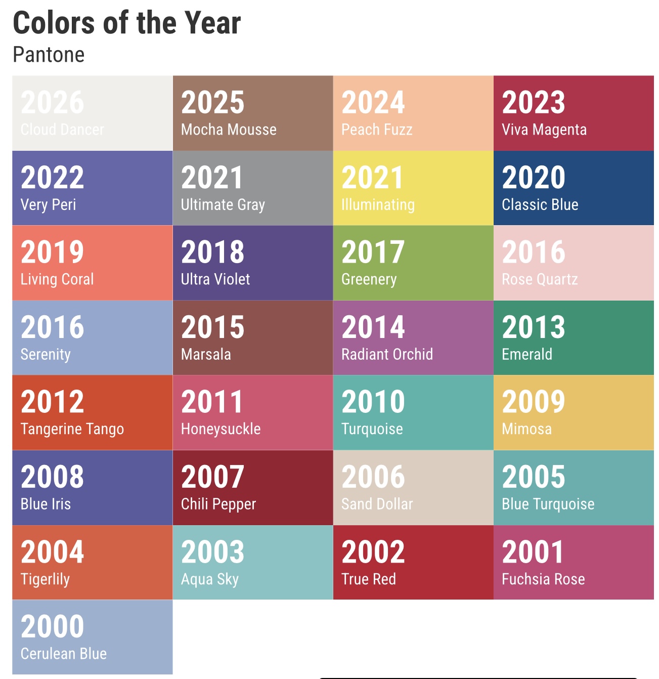 رنگهای سال پنتون از ۲۰۰۰ تا ۲۰۲۶م.