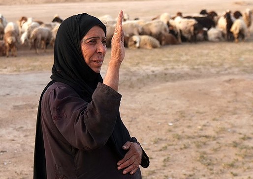 یک بانوی اهوازی با «شیله»، پوشش سنتی سر زنان عرب.