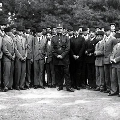 رضاخان در میان دانشجویان ایرانی با لباس متحدالشکل